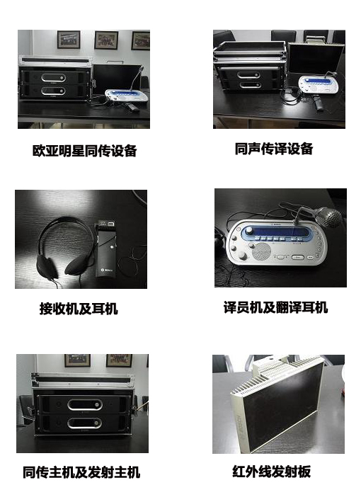 同傳主機、紅外發射主機、譯員器、紅外輻射板、翻譯間、接收機及耳機等全套設備